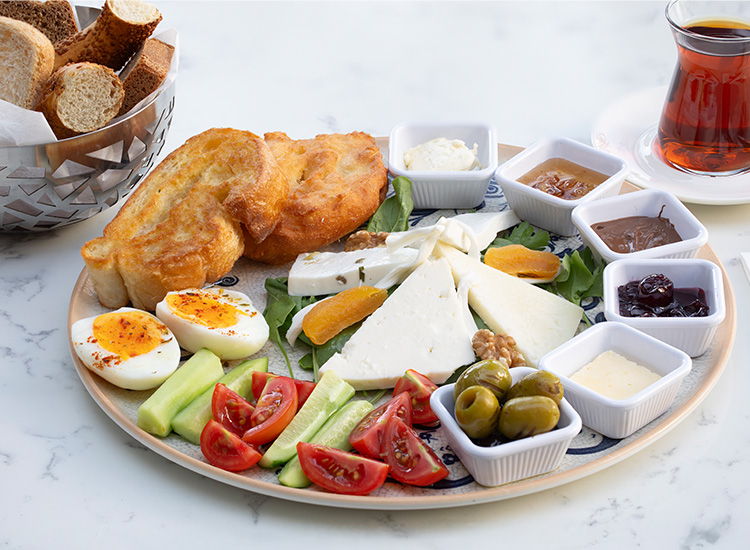 Her gün 15:00'a kadar servis edilir. En az iki kişiye servis edilir. Dört çeşit peynir, yerli kelebek ceviz, kuru kayısı, labne peyniri üzerine kekikli ızgara zeytin, peynirli omlet, mevsim meyveleri, patates kızartması, sahanda dana sucuk, yumurtalı ekmek, pişi, domates, salatalık, ekşi kulak ve tereyağı, lutenitsa, reçel, bal, kaymak, çikolata, fıstık ezmesi ve iki çeşit ilave zeytin ile beraber servis edilir.